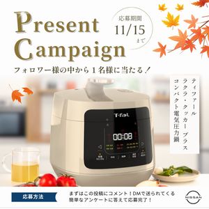 人気のティファール電気圧力鍋シリーズから新製品「ラクラ・クッカー プロ自動調理鍋」のモニター様を5名募集しています。応募条件は、ティファール公式サイトに会員登録されている方で、当選後にモニター製品をご使用の上、感想をLINEアンケートにてご回答いただける方です。